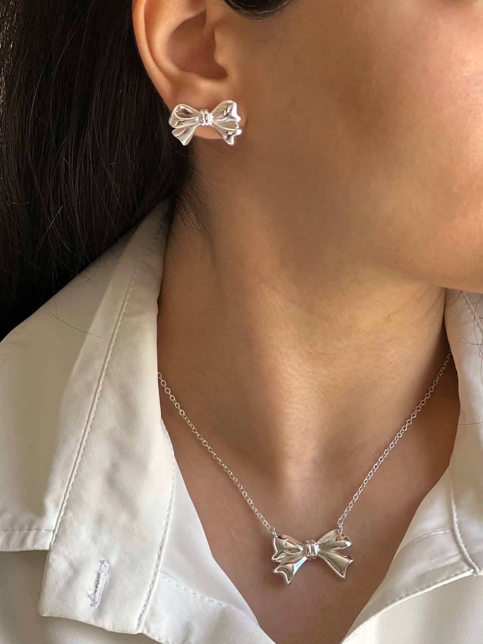 آبکاری چند لایه نقره / دارای لاک نانو جهت ثبات رنگ / ابعاد : طول زنجیر ۴۵ سانت پلاک ۳ در ۲ سانت گوشواره ۲/۵ در ۱/۵ سانت🛡کیفیت عالی رنگ ثابت و ضدحساسیت